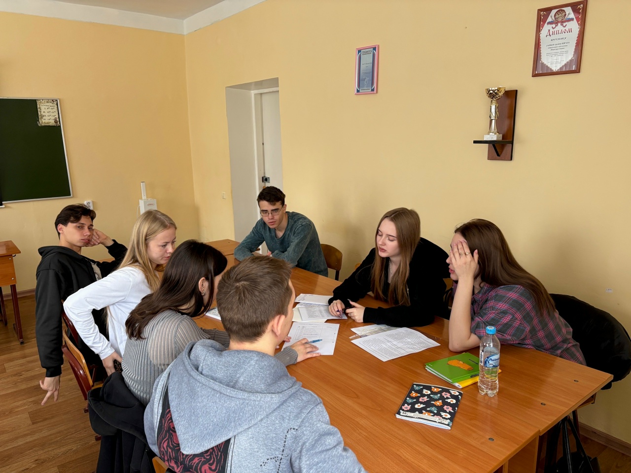 В состав нашей команды входили: Белова Валерия (Ю-621), Пшеничная Полина (Ю-622), Черниговцева Анастасия (Ю-621), Мухтарова Гоя (Ю-622), Золотарева Маргарита (Ю-611), Магнушевская Екатерина (ПОСО -631), Евсеенков Кирилл (Ю-611), Тендитный Иван (Ю-612), Борисов Матвей (Ю-621), Захаров Ива (ЮР-611).